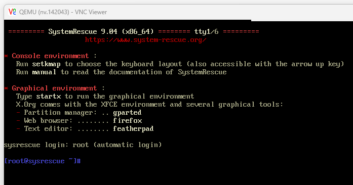 Вам нужно вставить в ваш сервер ISO диск systemrescue-9.04-amd64.iso или аналогичный (версия может отличаться). Это стандартный диск, он есть в нашем личном кабинете, на странице с серверами просто выполните эту операцию. После этого подождите 5 минут.